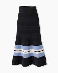 This knit skirt announces itself with a flared silhouette accented by bold stripes. Pair it with its matching Striped Knit Polo Shirt. SKU P2512N301KSI SIZE & FIT Close fit, flared hem Stretch viscose-knit Model is 180 cm/ 5’11” and is wearing a US 2 Bust: 32" Waist: 23" Hips: 35" COMPOSITION & CARE 43% Viscose 31% Cotton 23% Nylon 3%Elastane Washing Instructions Dry Clean Only Made in Italy