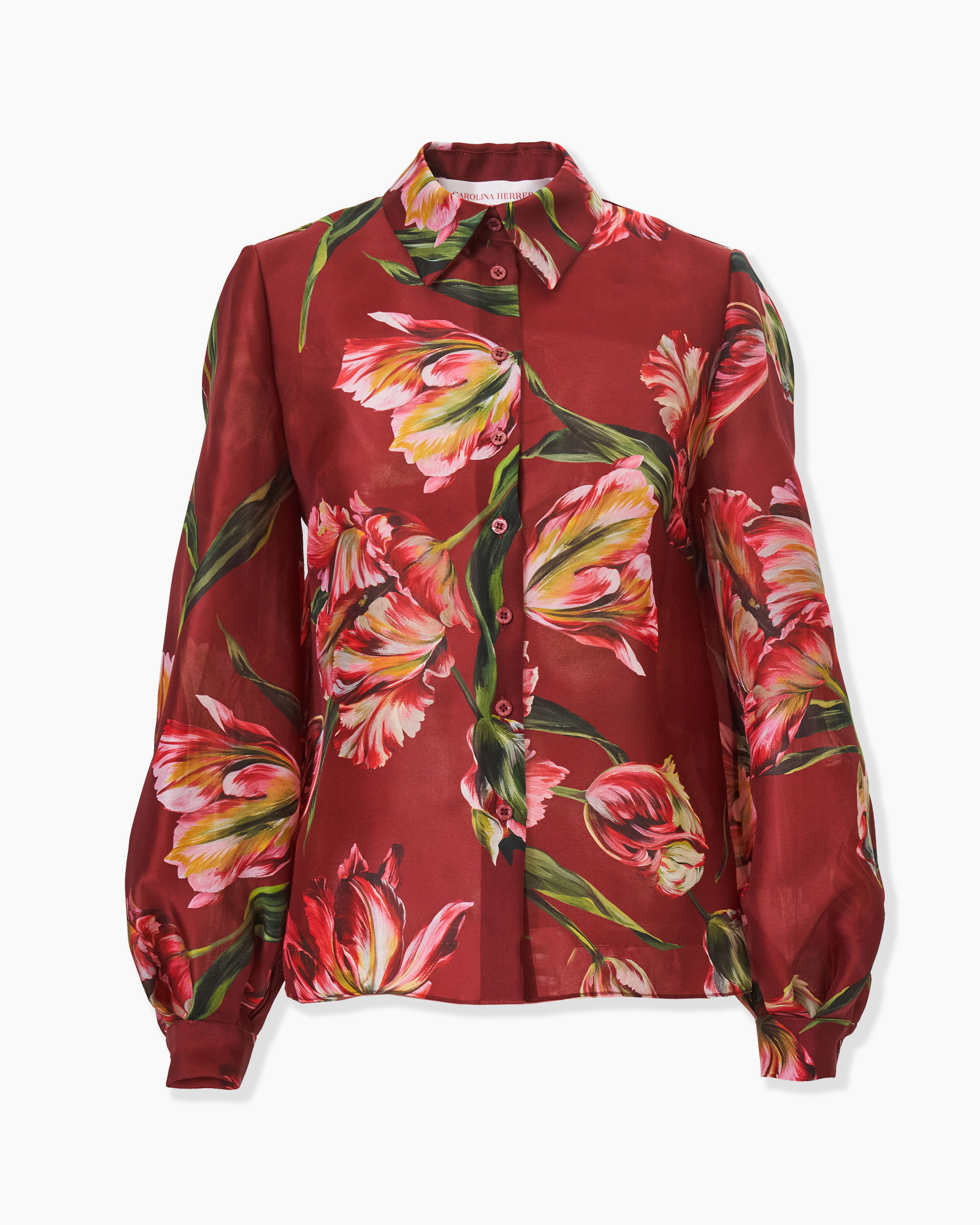 Billowing puff sleeves add to the romance of this silk-gazar blouse, decorated with a vibrant tulip print. Wear it with high-waisted trousers or a sleek skirt. SKU F2511N220TGA SIZE & FIT Regular fit Midweight silk-gazar COMPOSITION & CARE 100% Silk Washing Instructions Dry Clean Only Made in United States of America