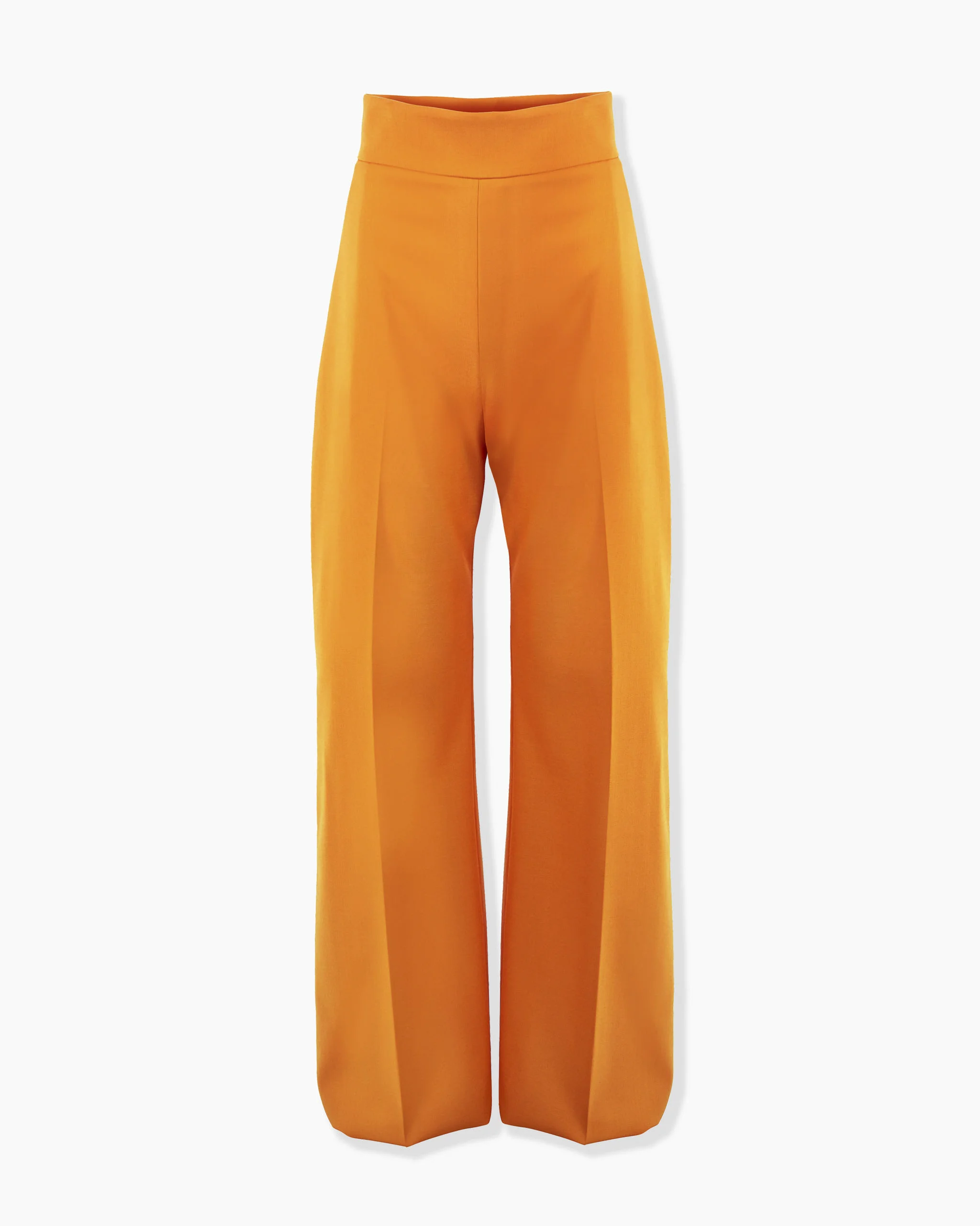 These high-rise pants are tailored from bi-stretch wool in a vibrant Aegean-inspired hue with a floor-sweeping, wide-leg silhouette. Pair them with tonal separates for a polished, monochromatic look. Concealed zip fastening at the side SKU R2611N411BWT SIZE & FIT High-rise, wide-leg fit Heavyweight stretch-wool Model is 179cm/ 5’9” and is wearing a US 2 Bust: 30" Waist: 24" Hips: 34" COMPOSITION & CARE 97% Wool 3% Elastane Washing Instructions Dry Clean Only Made in Italy