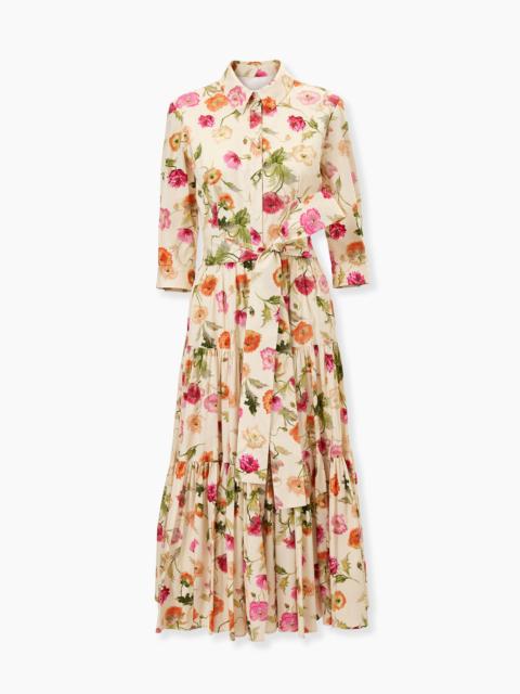 Poppy-Print Tiered Midi Shirt Dress