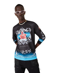 The Blade long-sleeve football jersey is a printed design featuring this season's blade artwork that plays with the contrast between two opposing feelings - the sharpness of the blade and the cold, silver chrome, contrasted with the warmth of nature, like the bold pink and red tones of an orchid flower. The addition of water droplets brings a fresh, crisp element to the design. Completed with rib cuffs and collar. - Perforated jersey fabric - Main: 100% polyester - Contrast: 100% cotton - Colour: black/blue gradient - Delicate machine wash - Made in Portugal - Relaxed fit - The model is 187cm/6'1 and is wearing a size M