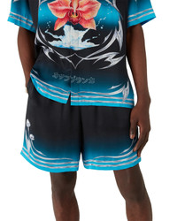 The Blades silk satin shorts are a printed design featuring artwork that play with the contrast between two opposing feelings - the sharpness of the blade and the cold, silver chrome, contrasted with the warmth of nature, like the bold pink and red tones of an orchid flower. The addition of water brings a fresh, crisp element to the design. Completed with an elasticised waistband, drawstring fastening, in-seam pockets, and a back patch pocket. - Silk satin fabric - 100% silk - Colour: blades multicolour print - Specialised dry clean only - Made in Italy - Relaxed fit - The model is 187cm/6'1 and is wearing a size M
