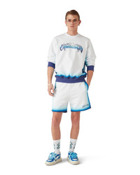 The Blue Fade sweatshorts are a sportswear design crafted from organic cotton fabric and feature hand-drawn typography of the Casablanca logo, inspired by the gothic typeface used in Chicano tattoos. Completed with an elasticated waistband, a gold-tipped drawstring fastening, in-seam side pockets and a patch back pocket. - Cotton loopback jersey fabric - 100% organic cotton - Blue Fade - Delicate machine wash - Made in Portugal - The model is 186cm/6'1 and is wearing a size M