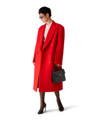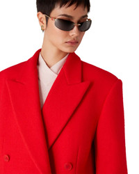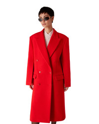The tailored overcoat is a classic double-breasted design. Completed with peak lapels, flap pockets, button closure, interlocking CC corozo buttons, a lining, a vent, and long-sleeves featuring a pleat down the under-sleeves. - Bolied wool fabric - 100% wool - Colour: red - Specialised dry clean only - Made in the UK - Relaxed fit - The model is 179cm/5'10 and is wearing a size S