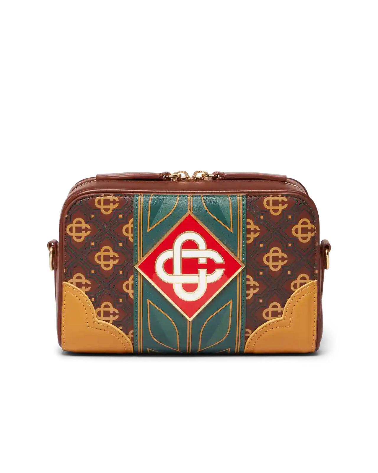 The brown monogram crossbody bag is crafted from Italian leather, adorned with the house's signature diamond logo on the side. Completed with the house's signature Laurel artwork, a zip closure, a shoulder strap, an outer zip pocket, and an internal slip pocket. Supplied with a gift box, a branded dust bag, and a product detail handbook. - Leather - 100% calf leather - Lining: 95% cotton 5% poly cotton - Brass and Zamac trim - Colour: brown monogram - Clean with a soft, dry cloth - Made in Italy