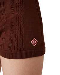 The cable knit mini shorts are crafted from knitted cotton fabric featuring the house's signature diamond logo. Completed with a contrast ribbed waistband with white edge detail. Designed to be worn with its coordinating cable knit polo shirt. - Knitted cotton fabric - Main: 100% cotton - Trim: 100% viscose - Colour: dark brown - Specialised dry clean only - The model is 177cm/5'9.5 and is wearing a size S