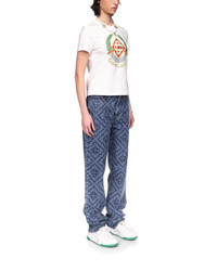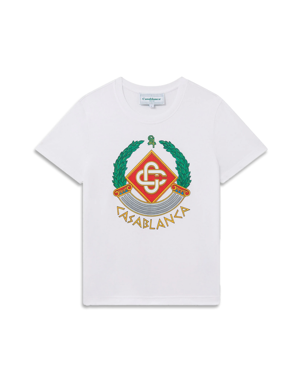 The Casa Crest t-shirt is a short-sleeved printed design crafted from a cotton fabric, featuring seasonal artwork of the house's play on the column as an iconography of Greece, and our version of a warped logo, creating an imagined Casa crest of ancient times. Completed with Casablanca written in an ancient Greek-style text, and a classic crew neck. 100% organic cotton Colour: white Delicate machine wash Wash and iron inside out, do not tumble dry Made in Portugal Fit true to size, take your regular size The model is 187cm/6’1 and is wearing a size M