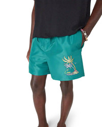 The Casa embroidery swim shorts feature colourful palm trees dancing in the ocean breeze, rendered in precise embroidery that captures the rhythmic movement of tropical foliage. Completed with an elasticised waistband, side pockets, and technical swim fabric construction that embodies the house's sophisticated approach to luxury swimwear. - Technical fabric - 100% polyester - Lining: 80% polyester 20% elastane - Artwork embroidery - Colour: green - Delicate machine wash - Made in Portugal - Fits true to size, take your regular size - - The model is 189cm / 6'2 and is wearing size M - Exclusive to casablancaparis.com along with our Paris and LA flagship stores