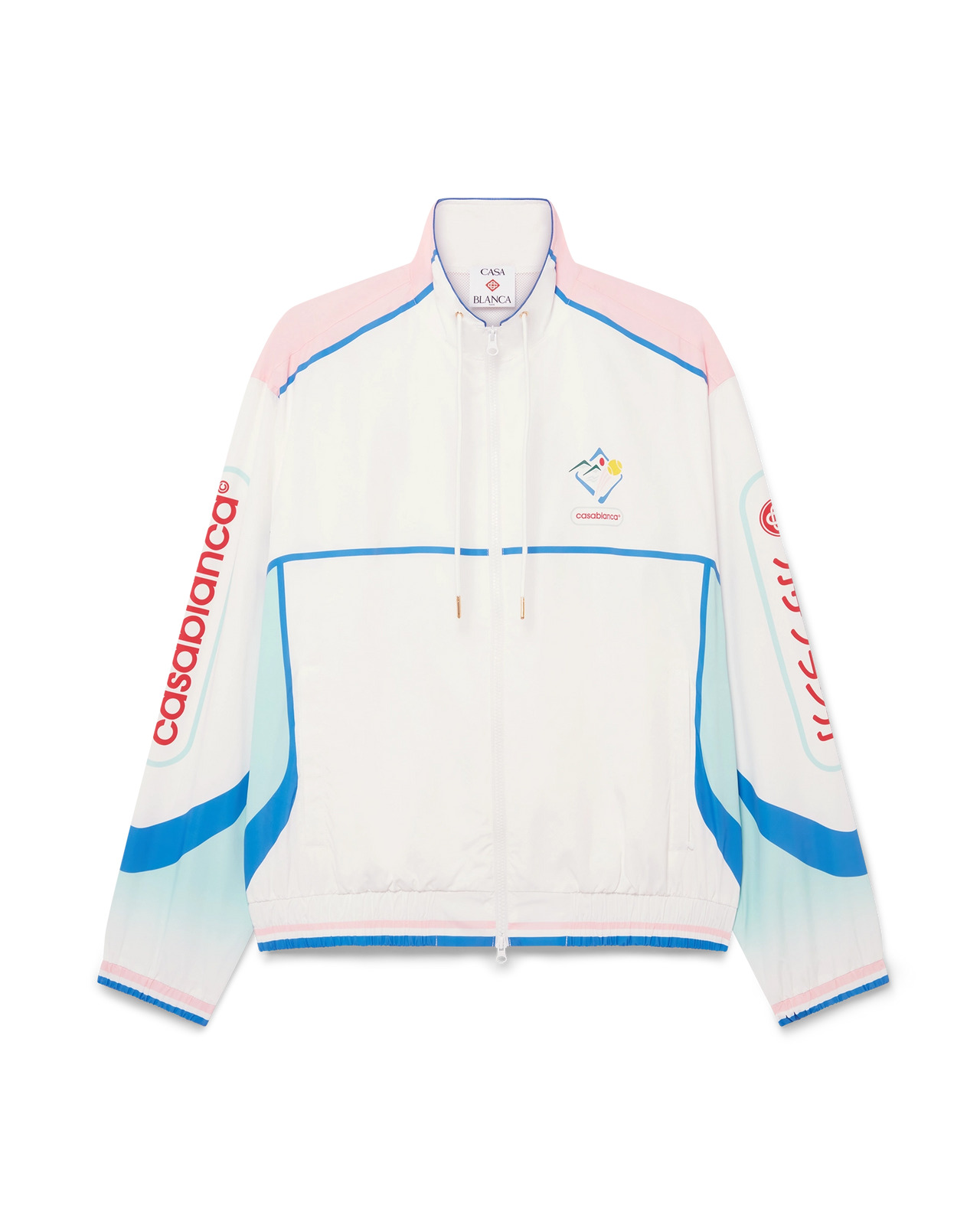The Casa Sportif windbreaker jacket is a sportswear design crafted from a technical taffeta fabric, displaying the season's artwork inspired by Japan. Completed with front zip closure, a funnel neck, front pockets and elasticised cuffs and hem. - Technical taffeta fabric - Main: 100% polyester - Lining: 100% polyester - Colour: white - Specialised dry clean only - Made in China - Relaxed fit - The model is 187cm/6'1 and is wearing a size M