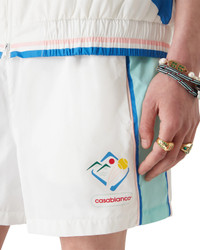 The Casa Sportif windbreaker shorts are a classic design crafted from a poly taffeta fabric. Completed with an elasticated waistband, drawstring fastening, blue stripes and piping detail, in-seam pockets, and a mesh lining. - Poly taffeta fabric - Main: 100% polyester - Lining: 100 polyester - Colour: white/green - Delicate machine wash - Made in China - Slim fit - The model is 187cm/6'1 and is wearing a size M
