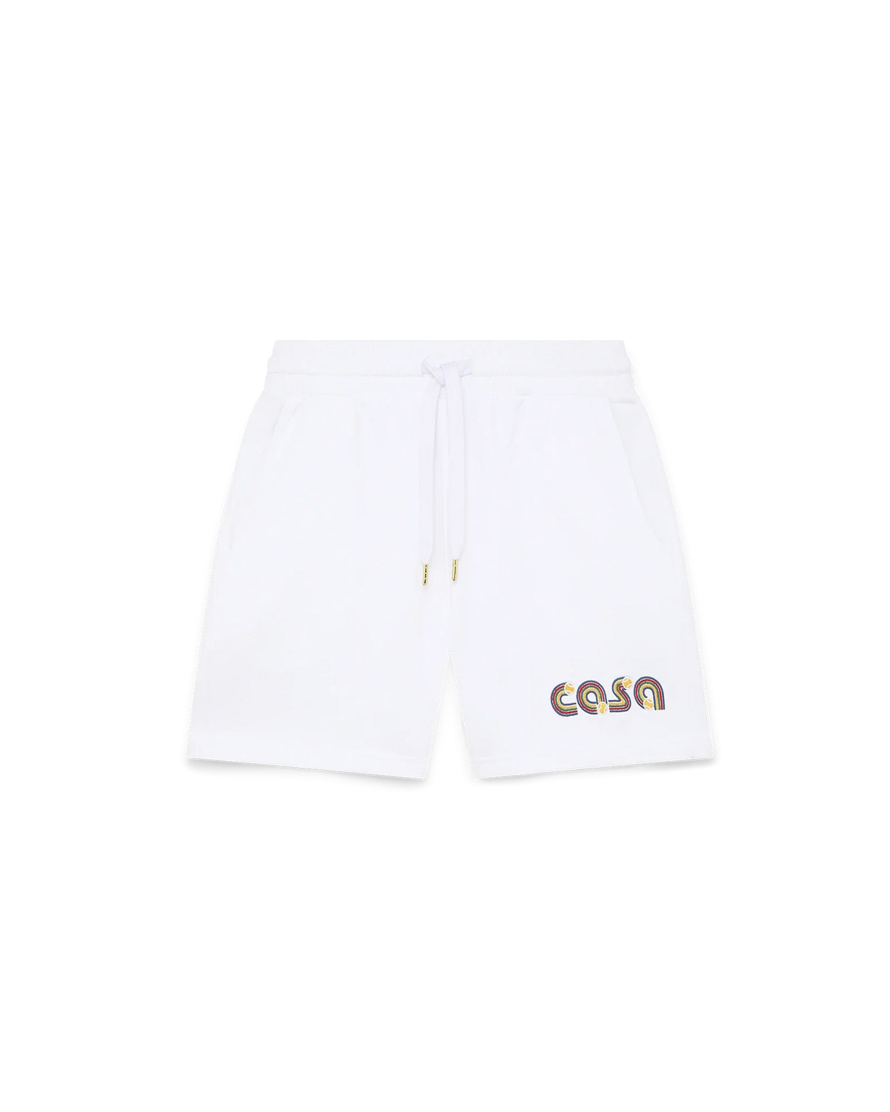 Women's Casa embroidered sweatshorts feature the house's signature artwork reinterpreted for the exclusive Nordstrom capsule centred around modern tennis-inspired athleisure. Made of 100% organic cotton, the short style falls above the knee and is finished with gold-tipped drawstring fastening and side pockets. - 100% organic cotton - Colour: white - Delicate machine wash - Made in Portugal - Fits true to size, take your regular size - The model is 177cm/5’10 and is wearing a size S. - Exclusive to casablancaparis.com & nordstrom.com