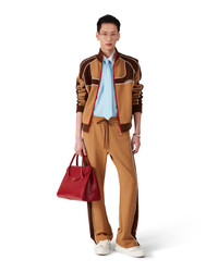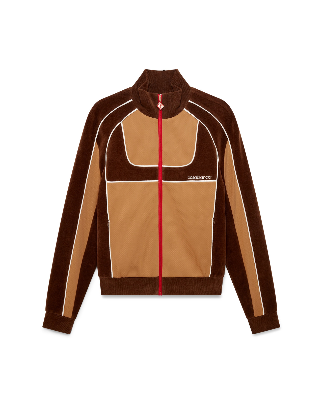 The Chenille panelled track jacket is a sportswear-inspired design crafted from velour technical fabric and features the house's signature diamond logo on the zipper tab. Completed with zip closure, panels with white piping details, rib polo collar, cuffs and hem. - Velour technical fabric - Main:85% polyester 15% elastane - Lining: 100% polyester - Colour: beige brown - Specialised dry clean only - Made in Portugal - Fits true to size, take your regular size - The model is 187cm/6'1and is wearing a size M