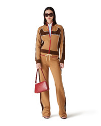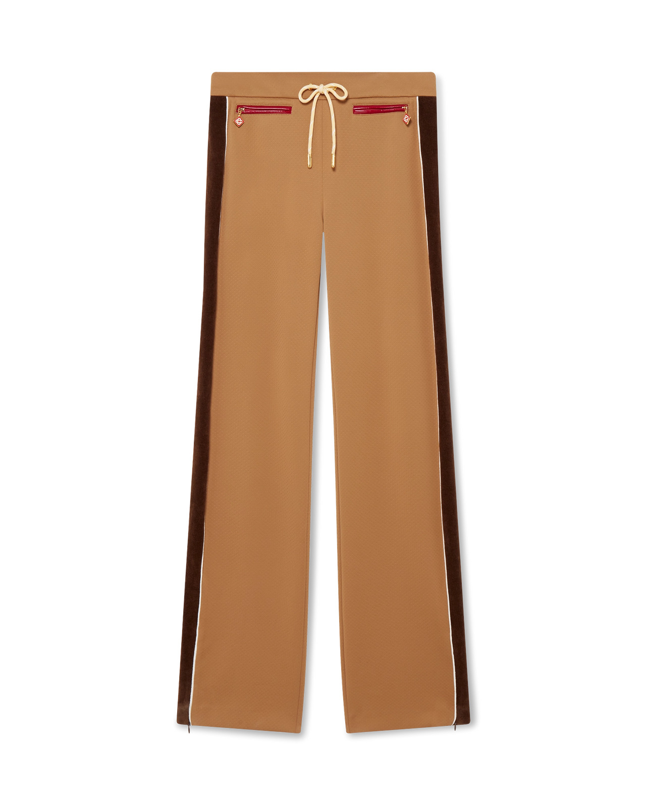 The Chenille panelled track pants are a sportswear-inspired design crafted from velour technical fabric and feature the house's signature diamond logo on the zipper tab. Completed with an elasticated waistband, gold-tipped drawstring fastening, side panels with white piping details, front pockets, and a welt back pocket with zip closure. - Velour technical fabric - Main: 85% polyester 15% elastane - Lining: 100% polyester - Colour: beige brown - The model is 177cm/5'9.5 and is wearing a size S