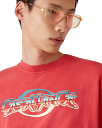 The chrome t-shirt is a short-sleeve design crafted from organic cotton fabric featuring the chrome text Casablanca logo. Completed with a classic crew neck. - Printed cotton fabric - 100% organic cotton - Colour: red - Delicate machine wash - Made in Portugal - The model is 187cm/6'1 and is wearing a size M