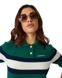 The colour block polo shirt is a cropped long-sleeve design crafted from merino wool fabric and features a blue and white stripe across the chest and back. Completed with raglan sleeves, ribbed cuffs, hem and collar, signature gold-rim pearl buttons and Casablanca logo. - Merino wool fabric - 100% merino wool - Colour: green/navy - Specialised dry clean only - Fits true to size, take your regular size - The model is 179cm/5'10.5 and is wearing a size S