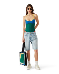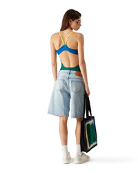 The colourblock swimsuit is crafted from a breathable technical swim fabric, featuring the house's Casablanca logo on the chest. Completed with contrast trims, high-cut legs, a scoop neck, and a cut-out back. - Printed technical swim fabric - 78% recycled polyamide 22% elastane - Lining: 78% recycled polyamide 22% elastane - Colour: green/blue - Delicate machine wash - Made in Portugal - Fits true to size, take your regular size - The model is 177cm/5'9.5 and is wearing a size S
