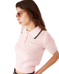 The cotton mouline polo shirt is a classic design crafted from mouline cotton fabric. Completed with button closure, signature gold rim pearl buttons, a rib collar, cuffs, hem, and placket. - Mouline cotton fabric - Main: 95% cotton 5% elastane - Contrast: 100% polyester - Colour: pink - Specialised dry clean only - Made in China - Slim fit - The model is 177cm/5'9.5 and is wearing a size S