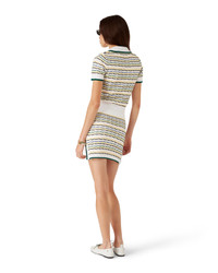 The cotton tuck stitch cropped polo shirt is a short-sleeve, knitted design crafted from cotton fabric. Completed with a v-neck, a rib collar, cuffs and hem with contrast edge detail. - Tuck stitch cotton fabric - Main: 100% cotton - Applique: 95% viscose 5% polyester - Colour: striped multicolour - Specialised dry clean only - Made in China - The model is 177cm/5'9.5 and is wearing a size S
