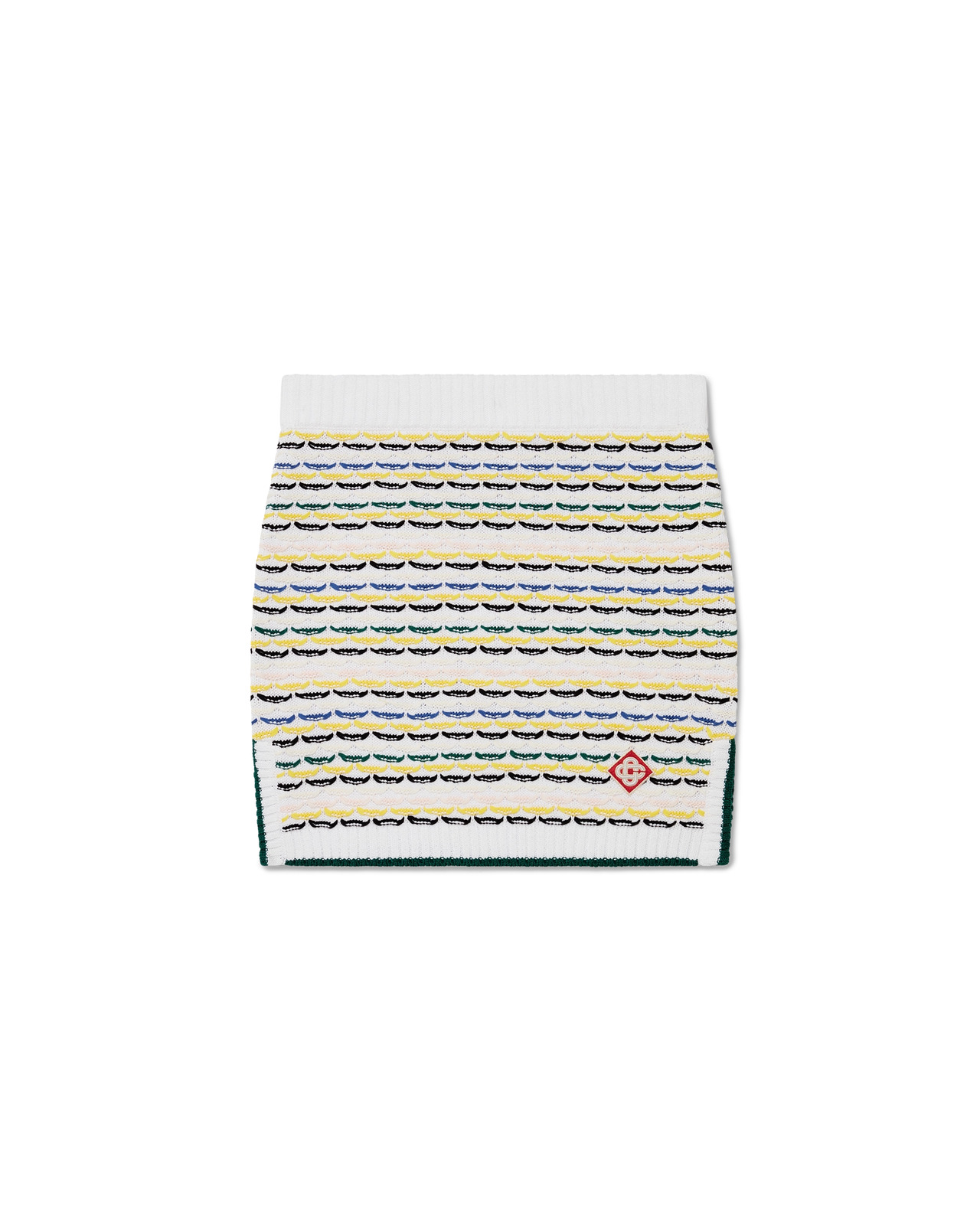 The cotton tuck stitch knit mini skirt is a short design crafted from cotton fabric. Completed with a rib elasticised waistband, side slits, and hem, with contrast edge detail. - Tuck stitch cotton fabric - Main: 100% cotton - Applique: 95% viscose 5% polyester - Colour: striped multicolour - Specialised dry clean only - Made in China - The model is 177cm/5'9.5 and is wearing a size S