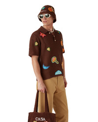 The crochet motif polo shirt is a short-sleeve design crafted from knitted mercerised cotton fabric. Completed with motifs of the house's classic design elements, signature gold rim pearl buttons, rib collar and cuffs. - Crochet motif fabric - Main: 100% mercerised cotton - Applique: 100% cotton/li> - Colour: brown - Specialised dry clean only - The model is 185cm/6'1 and is wearing a size M