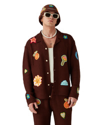 The crochet motif shirt is a long-sleeve design crafted from mercerised cotton crochet motif fabric. Completed with motifs of the house's classic design elements, signature gold rim pearl buttons, rib collar and cuffs. - Crochet motif fabric - Main: 100% mercerised cotton - Applique: 100% cotton/li> - Colour: brown - Specialised dry clean only - The model is 185cm/6'1 and is wearing a size M