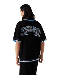 The crochet sporty shirt is a short-sleeve knitted design crafted from crochet cotton fabric and features the house's signature diamond logo. Completed with signature gold rim pearl buttons, front patch pockets, hand-drawn typography of the Casablanca logo inspired by the gothic typeface used in Chicano tattoos, and striped edge detail on the collar, cuffs and hem. - Crochet cotton fabric - Main: 100% cotton - Emblem: 100% acrylic - Colour: black/purple - Specialised dry clean only - The model is 187cm/6'1 and is wearing a size M - Exclusive to casablancaparis.com