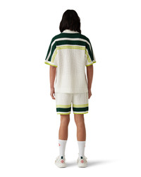 The crochet sporty shirt is a short-sleeve knitted design crafted from crochet cotton fabric and features the house's signature diamond logo. Completed with signature gold rim pearl buttons, stripe details on the shoulders and down the sleeves, front patch pockets, and striped edge detail on the collar, and cuffs. - Crochet cotton fabric - Main: 100% cotton - Trim: 95% viscose 5% polyester - Colour: green/white - Specialised dry clean only - The model is 187cm/6'1 and is wearing a size M - Exclusive to casablancaparis.com
