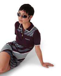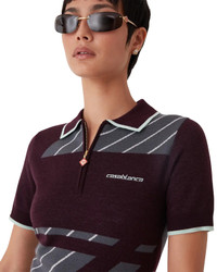 The diagonal tennis merino polo dress is a short-sleeve knitted design featuring diagonal sport stripes and an embroidered Casablanca logo. Completed with a quarter zip closure with signature diamond logo zipper tab, a rib collar, and contrast edge detail on the collar and cuffs. - Merino wool fabric - 100% merino wool - Colour: aubergine/ stripe - Specialised dry clean only - Made in China - Slim fit - The model is 179cm/5'9.5 and is wearing a size S