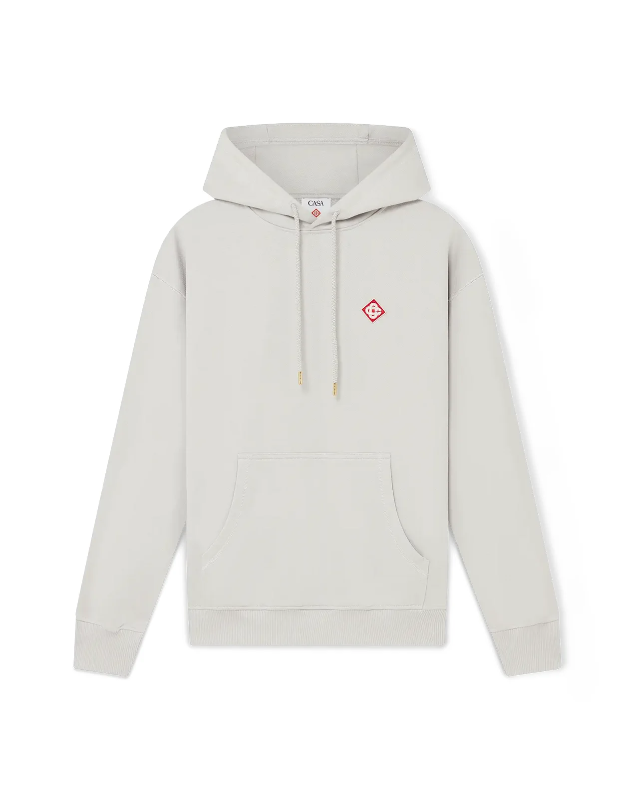 The Casa logo patch hoodie is a refined apres-sport silhouette featuring the house's signature diamond logo. Completed with a kangaroo pocket, ribbed cuffs, and hem, gold-tipped drawstring fastening. - Cotton loopback jersey fabric - 100% organic cotton - Colour: grey - Delicate machine wash - Made in Portugal - Relaxed fit - - - - Exclusive to casablancaparis.com and our Paris Flagship store
