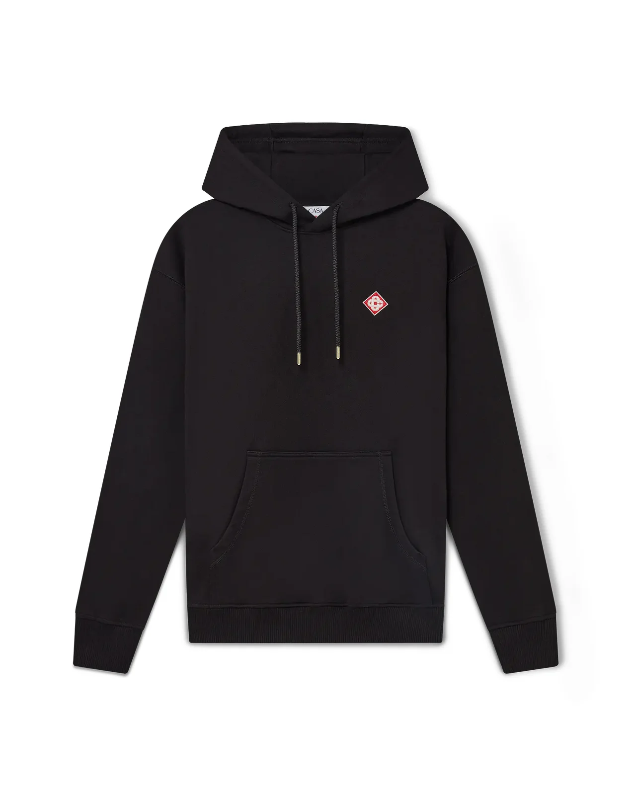 The Casa logo patch hoodie is a refined apres-sport silhouette featuring the house's signature diamond logo. Completed with a kangaroo pocket, ribbed cuffs, and hem, gold-tipped drawstring fastening, finished in black for understated elegance. - Cotton loopback jersey fabric - 100% organic cotton - Colour: black - Delicate machine wash - Made in Portugal - Relaxed fit - - - - Exclusive to casablancaparis.com and our Paris Flagship store