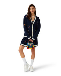 The embroidered motif wool cashmere pleated skirt is a mini style crafted from soft wool cashmere fabric featuring embroidered artwork representing the house's symbology with nature and architecture. Completed with a yoke and pleated panel, zip closure, and black and white stripe detail on the hem. - Merino wool blend fabric - Main: 90% merino wool 10% cashmere - Embroidery: 100% polyester - Colour: navy/white - Specialised dry clean only - Fits true to size, take your regular size - The model is 179cm/5'10.5 and is wearing a size S