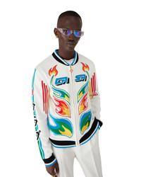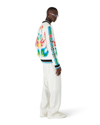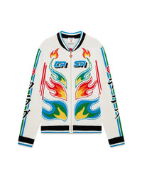 The Flame Laurel cotton knit Casa Club jacket is a long-sleeve design featuring the season's Flames artwork, an updated version of the Laurel artwork - featured in our Spring-Summer '24 Nigerian collection - playing with the strong graphics found in vintage Japanese football kits. Completed with a zip closure featuring the house's signature diamond logo zipper tab, interlocking CC logo, a blue, white and green stripe detail down the sleeves, and a black, white and blue rib cuffs, hem and baseball-style collar details. - Cotton knit fabric - 100% merino wool - Embroidery: 100% polyester - Flame Laurel multicolour - Specialised dry clean only - Made in China - Relaxed fit - The model is 187cm/6'1 and is wearing a size M