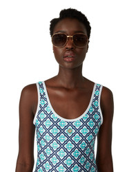 The gold & brown Vermont sunglasses are crafted from stainless steel frames featuring stainless steel and acetate temples. Here, the signature Casablanca diamond monogram logo is positioned at the temples. The gradient lenses are 100% UV protective and the style is complete with a Casablanca box, cleaning cloth and warranty booklet. - Stainless steel frames - Temples with gold-plated diamond logo - Colour: gold & brown - Clean with a soft, dry cloth