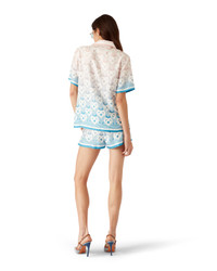 The Gradient Heart monogram silk short-sleeve shirt is an all-over printed design featuring the house's heart monogram on a pink and blue gradient background. Crafted from a monogram silk twill fabric and finished with a Cuban collar, a breast pocket, and collar, cuffs, hem and placket with stripe detail. - Printed silk twill fabric - 100% silk - Degrade Heart Monogram print multicolour - Specialised dry clean only - Made in Italy - Relaxed fit - The model is 177cm/5'9.5 and is wearing a size S