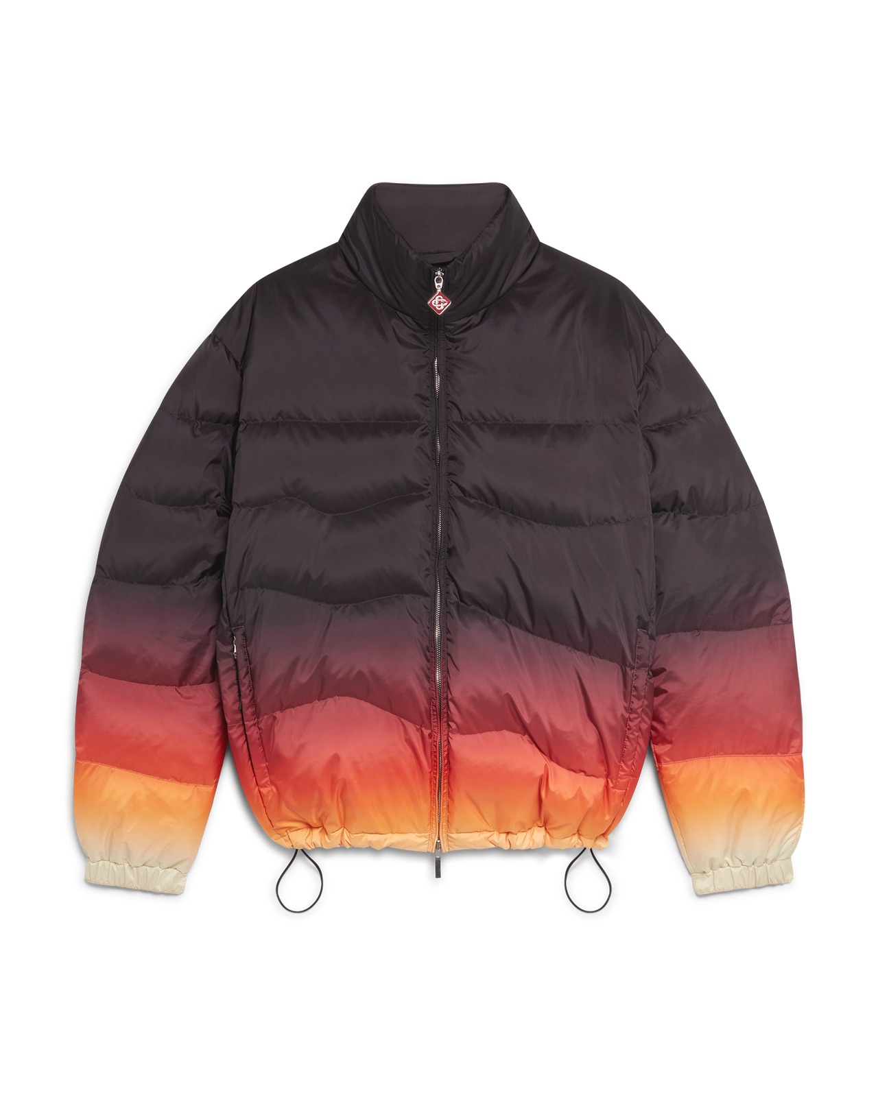The ski puffer jacket is a refined outerwear design crafted from gradient printed down quilted puffer fabric, featuring a multicolour gradient inspired by dramatic sunsets over Japan's snow-covered mountain ranges. Drawing from breathtaking moments when vibrant skies transform above rural winter landscapes. Completed with a zip closure with the house's signature diamond logo zipper tab, front pockets with zip closure, ski pass pocket on the left arm and elasticised hem and cuffs. - Quilted puffer fabric - Main: 100% polyester - Lining: 100% polyester - Padding: 80% down 20% feather - Colour: gradient multicolour print - Specialised dry clean only - Made in Italy - Relaxed fit - The model is 187cm/6'1 and is wearing a size M - Exclusive to casablancaparis.com, Paris Flagship store and selected retailers