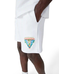 The Innocence Triangle sweatshort is a sophisticated design featuring an ocean scene at sunset with an island in the centre, rendered in a style influenced by classic surf t-shirt art. The artwork captures the golden hour's ethereal beauty over tropical waters, presenting an idealised vision of beach paradise through the house's refined sport-leisure lens. Completed with a classic crew neck, ribbed trim at the cuffs and hem, and a relaxed silhouette. - Loopback jersey fabric - 100% organic cotton - Organic cotton lining - Colour: white - Delicate machine wash - Made in Portugal - Relaxed fit - - The model is 189cm / 6'2 and is wearing size M - Exclusive to casablancaparis.com, and our Paris and LA flagship stores
