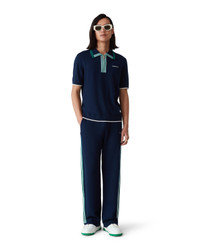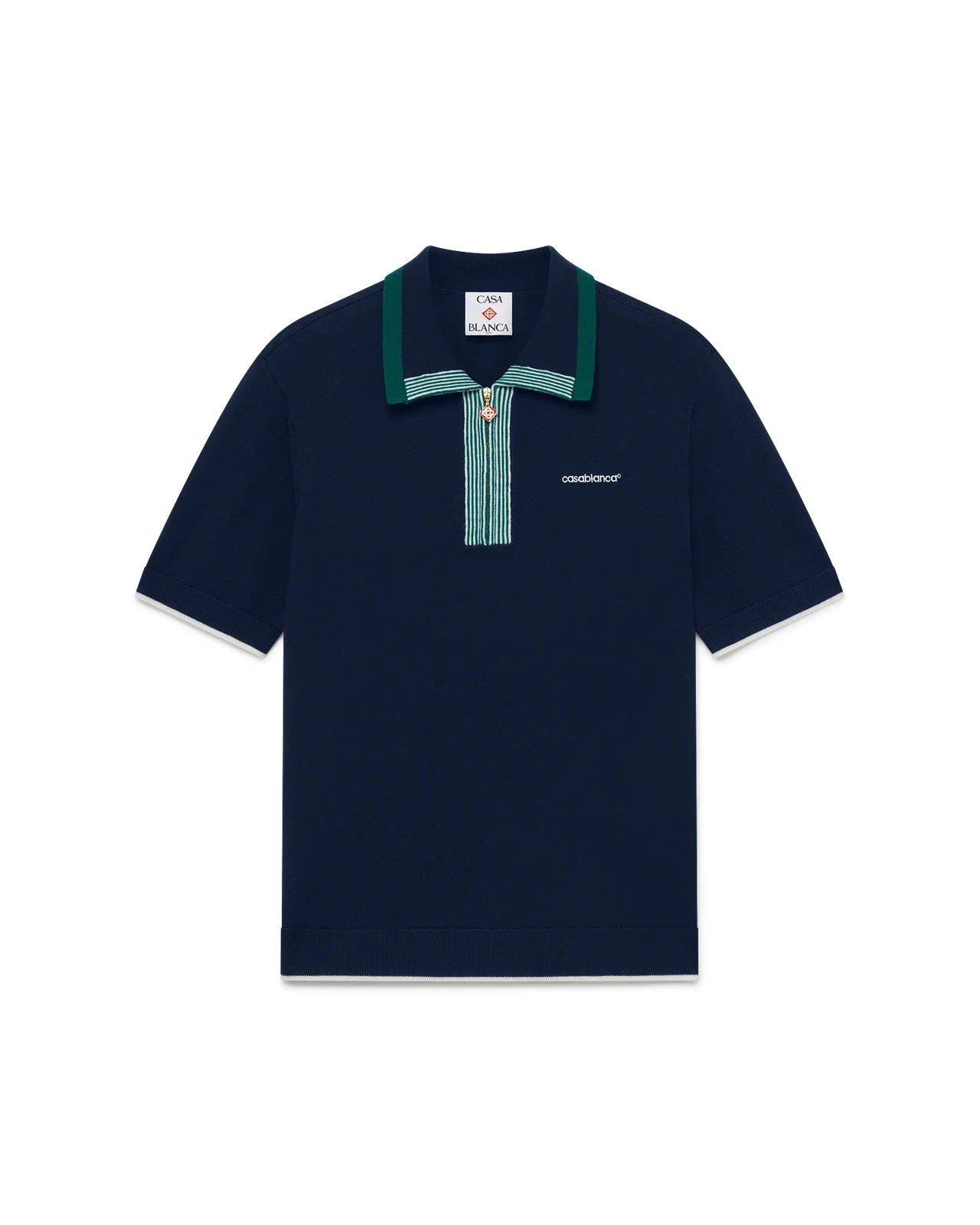 The knit tennis polo shirt is a classic design crafted from a merino wool fabric. Completed with contrast ribbed edge detail on the cuffs, hem, collar and placket, front zip closure, a rib collar and Casablanca logo. - Merino wool fabric - 100% merino wool - Embroidery: 100% polyester - Colour: navy - Specialised dry clean only - The model is 187cm/6'1 and is wearing a size M