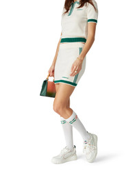 The knit tennis skirt is a fitted mini-skirt design crafted from a merino wool fabric. Completed with an elasticated waistband, contrast edge detail on the hem, stripe detail down the sides, and the Casablanca logo. - Merino wool fabric - Main: 100% merino wool - Embroidery: 100% polyester - Colour: white/green - Specialised dry clean only - Fits true to size, take your regular size - The model is 179cm/5'10.5 and is wearing a size S
