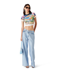 The La Musique cropped t-shirt is a short-sleeve design crafted from a printed cotton fabric featuring the season's artwork representing an ode to Bootsy Collins and iconic 70s funk records. Completed with a contrast rib crew neck. Designed to fit above the navel. - Printed cotton fabric - Main: 95% pima cotton 5% elastane - Contrast: 100% cotton - La Musique multicolour - Delicate machine wash - Made in Portugal - Fits true to size, take your regular size - The model is 180cm/5'11 and is wearing a size S