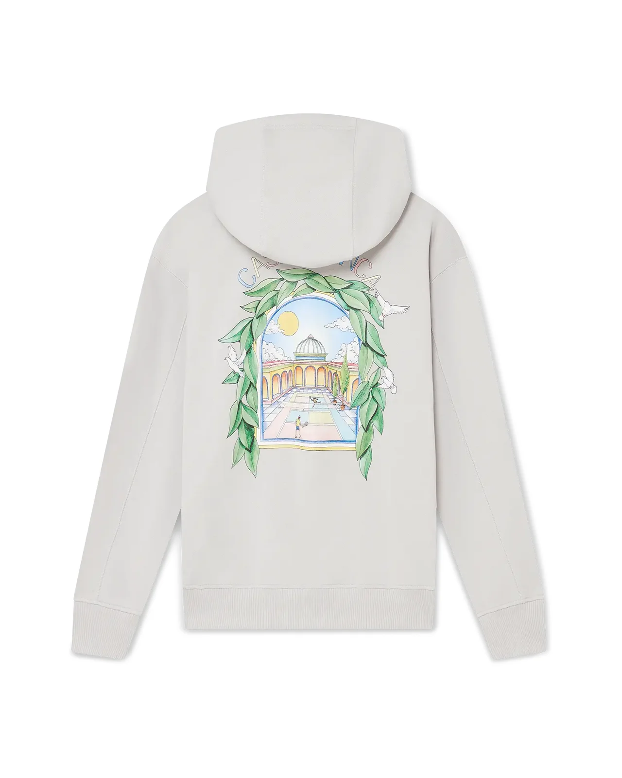 The Casa L'Arche hooded sweatshirt is a refined long-sleeve printed design featuring the house's seasonal artwork with design elements of the arch, nature, architecture, and tennis. Completed with a hood, gold-tipped drawstring fastening, and rib cuffs and hem. - Cotton loopback jersey fabric - 100% organic cotton - Colour: grey - Delicate machine wash - Made in Portugal - Relaxed fit - - - - Exclusive to casablancaparis.com and our Paris Flagship store