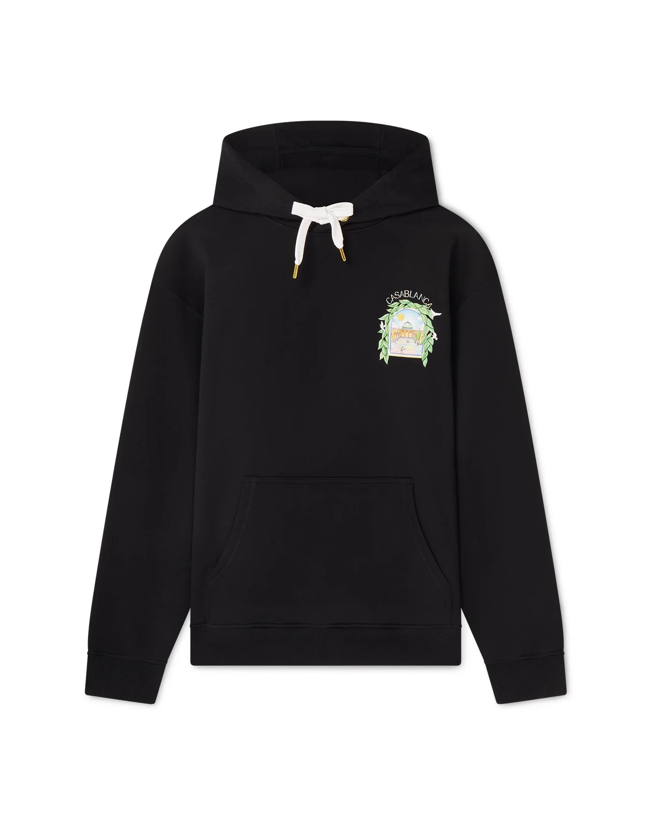 The Casa L'Arche hooded sweatshirt is a refined long-sleeve printed design featuring the house's seasonal artwork with design elements of the arch, nature, architecture, and tennis. Completed with a hood, gold-tipped drawstring fastening, and rib cuffs and hem. - Cotton loopback jersey fabric - 100% organic cotton - Colour: black - Delicate machine wash - Made in Portugal - Relaxed fit - Exclusive to casablancaparis.com and flannels.com