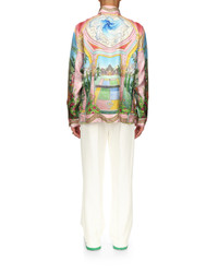 The Le Jardin Ideal shirt is a printed long-sleeve design featuring the ethereal imaginary world of Casablanca. Finished with the house's signature enamel rim pearl buttons, button closure, a Casablanca branded label, and floral detail on the collar, cuffs and hem. - Printed cotton fabric - 100% cotton - Le Jardin Ideal print - Specialised dry clean only - Made in Italy - Fits true to size, take your regular size