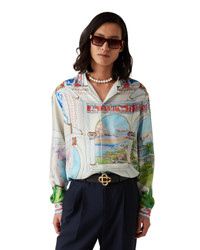 The Le Passage silk shirt is a long-sleeve design crafted from silk twill fabric featuring the house's seasonal artwork - presenting four different dimensions playing on perspectives and architecture. Completed with a collar, button closure, interlocking CC branded corozo buttons, signature gold rim pearl button at the collar and on the cuffs, Greek key inspired edge detail on the collar, cuffs and hem. - Silk twill fabric - 100% silk - Le Passage multicolour print - Specialised dry clean only - Made in Italy - Fits true to size, take your regular size - The model is 187cm/6'1 and is wearing a size M