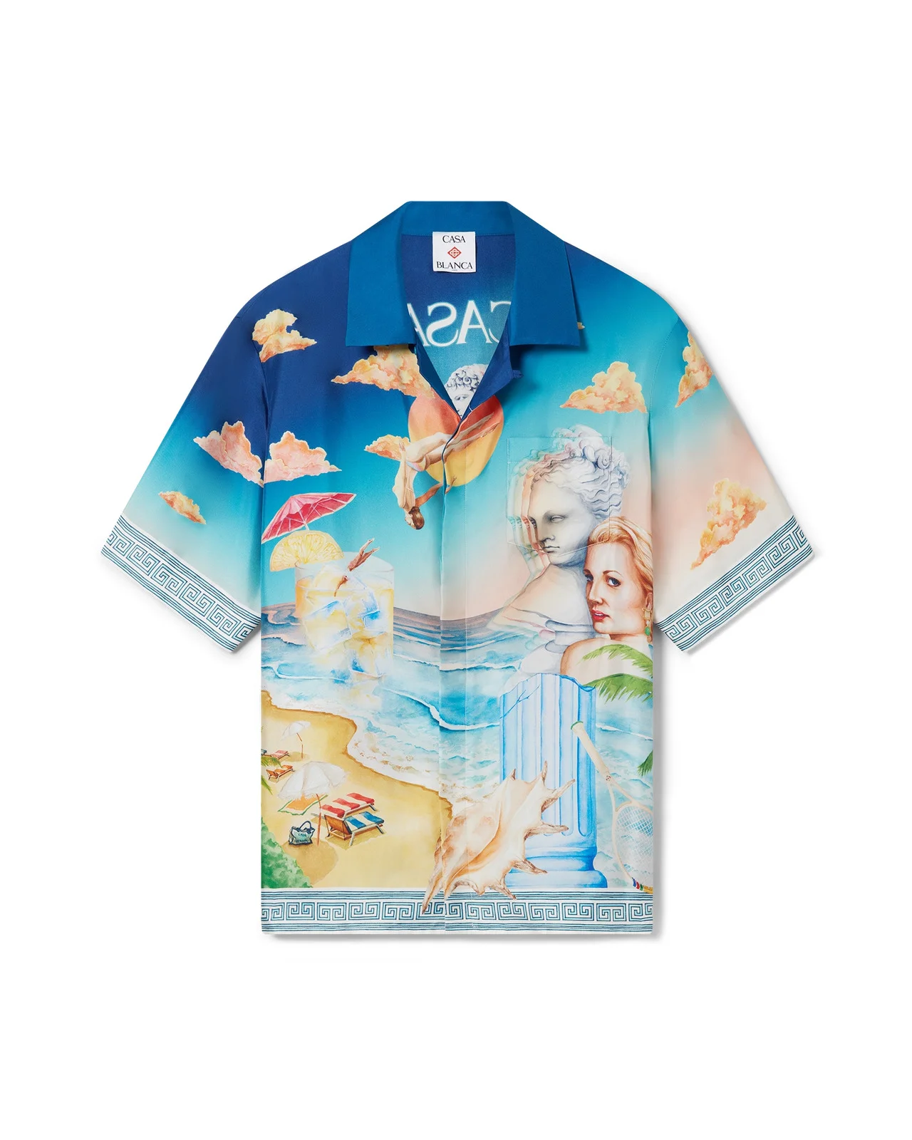The Le Plongeon silk shirt is a short-sleeved all-over printed design crafted from a silk twill fabric featuring the house's seasonal print, inspired by the continued study of the classical beauty and contemporary allure of Ancient Greece, incorporating the house's design elements. Completed with signature interlocking CC logo corozo buttons, button closure, a Cuban collar, and a breast pocket. - Printed silk twill fabric - 100% silk - Le Pongeon multicolour print - Specialised dry clean only - Made in Italy - Fits true to size, take your regular size - The model is 187cm/6'1 and is wearing a size M