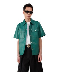 The leather shirt is a short-sleeve design crafted from lamb leather. Completed with button closure, gold-plated snap buttons, flap pockets, a collar and side slits. - Leather fabric - Main: 100% lamb leather - Colour: dark green - Specialised dry clean only - Made in Turkey