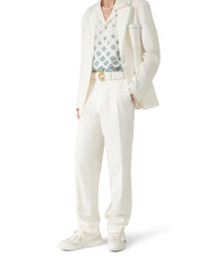 The linen pleated trousers are a tapered design crafted from linen fabric. Completed with zip closure, slanted front pockets, welt back pocket, belt loops, and pleats. - Linen fabric - Main: 50% cotton 48% linen 2% elastane - Lining: 100% cotton - Colour: white - Specialised dry clean only - Made in Portugal - The model is 187cm/6'1 and is wearing a size M