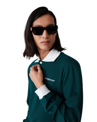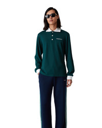 The long-sleeve polo shirt is a classic design crafted from a poly blend fabric. Completed with the classic three-button closure, contrast rib collar and cuffs with Greek-key-inspired edge detail and Casablanca text logo. - Viscose blend fabric - Main: 78% viscose 17% polyamide 5% elastane - Contrast: 95% cotton 5% elastane - Colour: green - Specialised dry clean only - Made in Portugal - Model is 186cm/6'1 and is wearing a size M