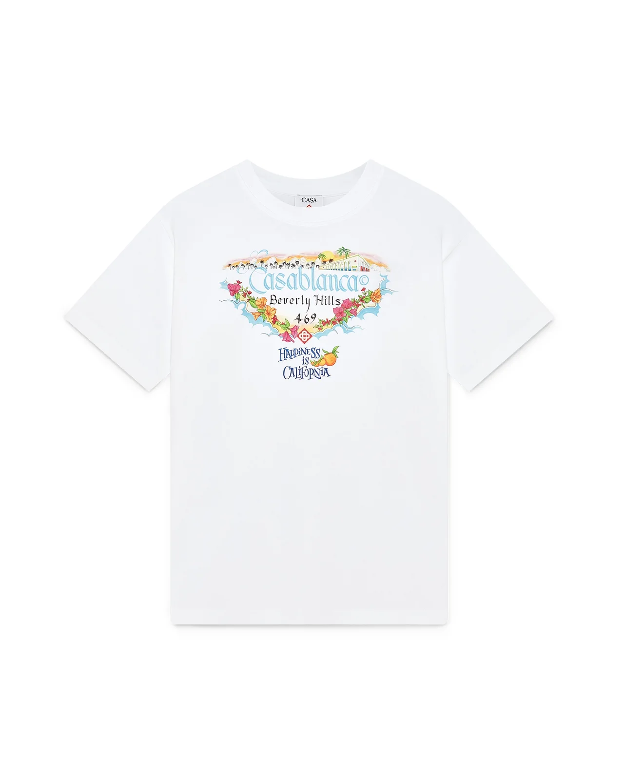 The LA store printed classic t-shirt is a refined design featuring vibrant, multi-coloured graphics that celebrate Los Angeles' cultural juxtapositions - from skateboarding and cinema to Mexican-American culture, and architecture. This limited-edition piece marks a pivotal milestone, honouring LA as inspiration and home for the brand. Completed with a classic crewneck, and a relaxed silhouette. - Cotton jersey fabric - 100% organic cotton - Colour: white - Delicate machine wash only - Made in Portugal - Relaxed fit - Exclusive to casablancaparis.com and our Los Angeles Flagship store