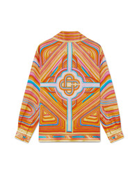 The Low Rider silk shirt is an all-over printed design crafted from silk satin fabric featuring artwork referencing the pop colours and airbrushing painting techniques used on low rider cars with the Casablanca logo. Finished with a Cuban collar, a breast pocket, hidden button closure with interlocking CC corozo buttons, and a gold rim enamel button on each cuff. - Silk satin fabric - 100% silk - Low Rider multicolour - Specialised dry clean only - Made in Italy - The model is 177cm/5'9.5 and is wearing a size S