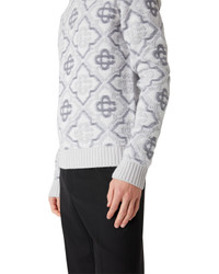 The monogram knit jumper is a classic design featuring the house's signature monogram crafted from a wool blend fabric. Completed with a classic ribbed crew neck, cuffs, and hem. - Wool blend fabric - Main: 98% merino wool 1% polyamide 1% elastane - Colour: grey/white - Specialised dry clean only - The model is 185cm/ - 6'1 and is wearing a size M